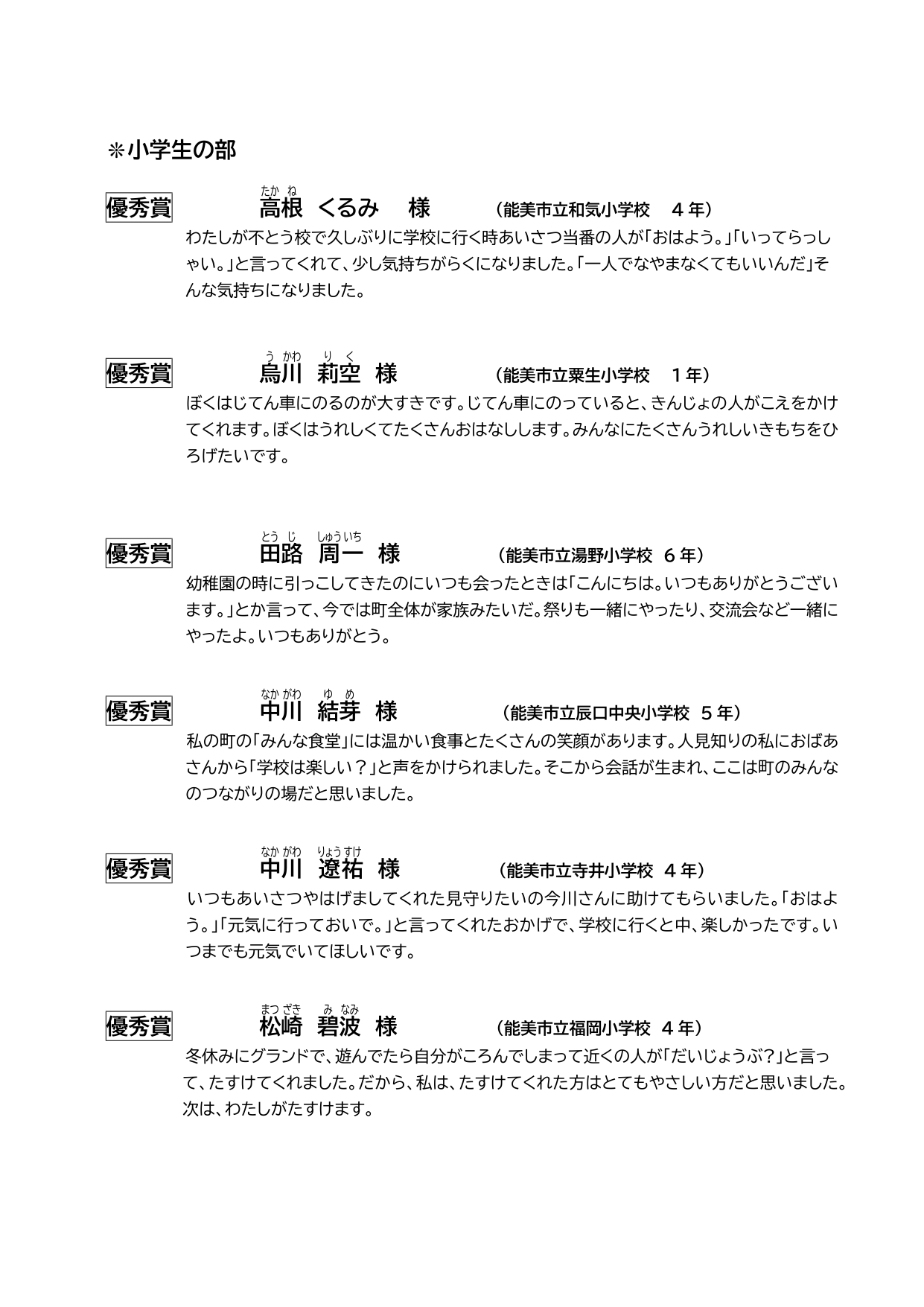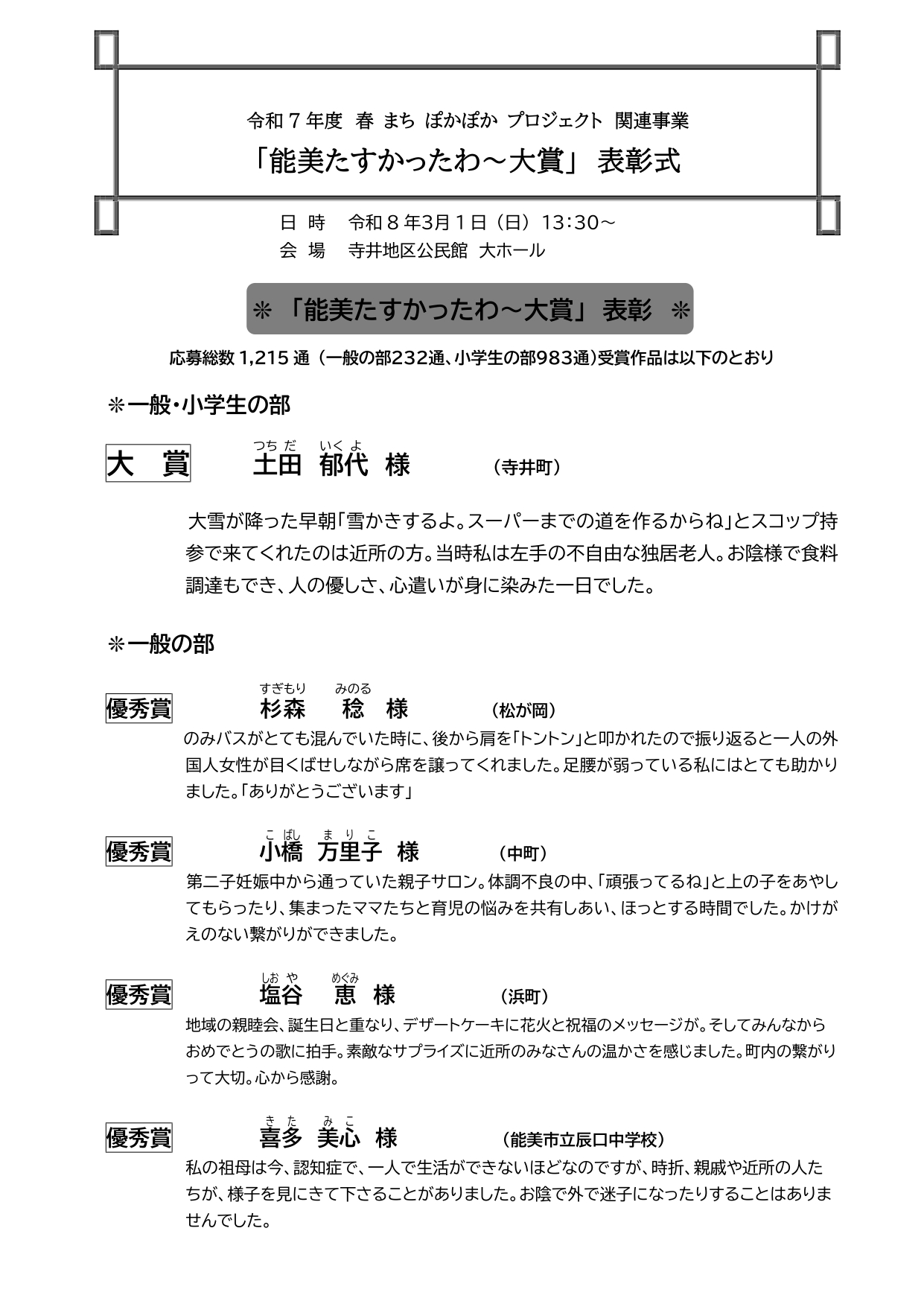 「能美たすかったわ~大賞」は、審査の結果、下記のとおり入選作品が決定しました!